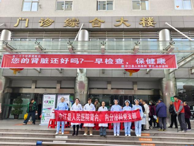 为普及肾脏病防治知识,推动肾脏疾病早期筛查与干预,降低疾病风险,增强患者及家属对疾病管理的信心,推动社会资源对肾脏健康的关注与支持,中江县人民医院肾内、内分泌科党支部带领科室医护人员围绕“您的肾脏还好吗?早检查,保健康。”开展了质控、义诊、科普宣讲等一系列活动。
